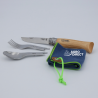 Kit composé d'un couteau OPINEL N°8, de 2 inserts (une fourchette et une cuillère) et d'une serviette microfibre.