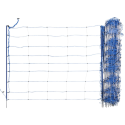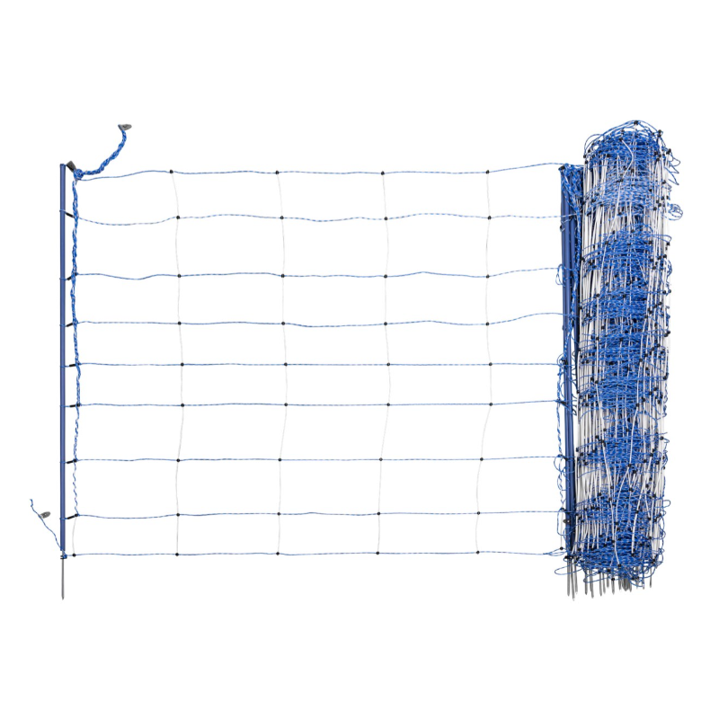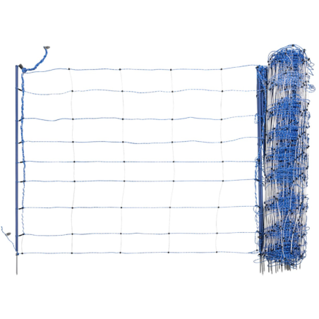 Le filet TitanNet mesure 50 m de longueur et 1,22 m de hauteur. Il possède 9 fils horizontaux tressés, des conducteurs en acier inoxydable et des conducteurs en cuivre. Le filet est composé de 14 piquets simples pointes, très robuste ainsi que des supports verticaux tous les 30 cm, pour une bonne stabilité de votre filet. Le filet de couleur bleu et blanc, permet une bonne visibilité et repousse le gibier et plus particulièrement les loups. Ce filet convient parfaitement pour la protection de vos troupeaux.