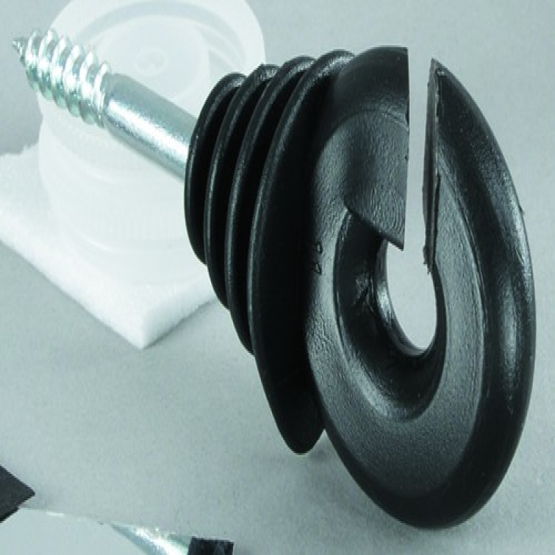6.98 € TTCIsolateurs annulaires noirs, conçus pour fixer fil ou câble sur piquets en bois.