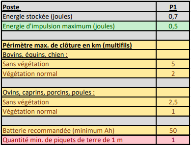 Le poste P1 est un électrificateur qui convient aux petites clôtures pour bovins, chevaux ou animaux domestiques, avec peu de végétation.