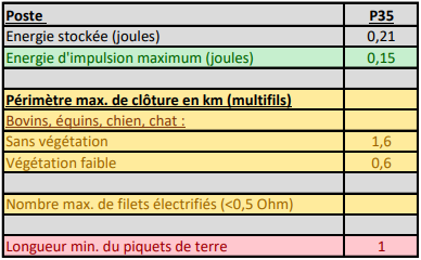 L'électrificateur solaire P35 possède un module solaire intégré, avec une puissance de 3W et une batterie gélifiée de 6V/4Ah.