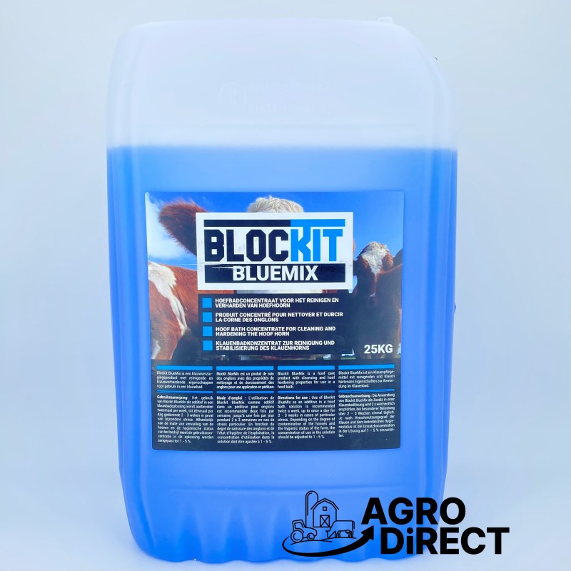 Le Blockit Bluemix est un produit pédiluve préventif conçu pour soigner et protéger les onglons des bovins. Sa formulation innovante à base de nitrate de cuivre et d’acide sulfurique permet de désinfecter, nettoyer et durcir le sabot, contribuant à prévenir les blessures et infections.